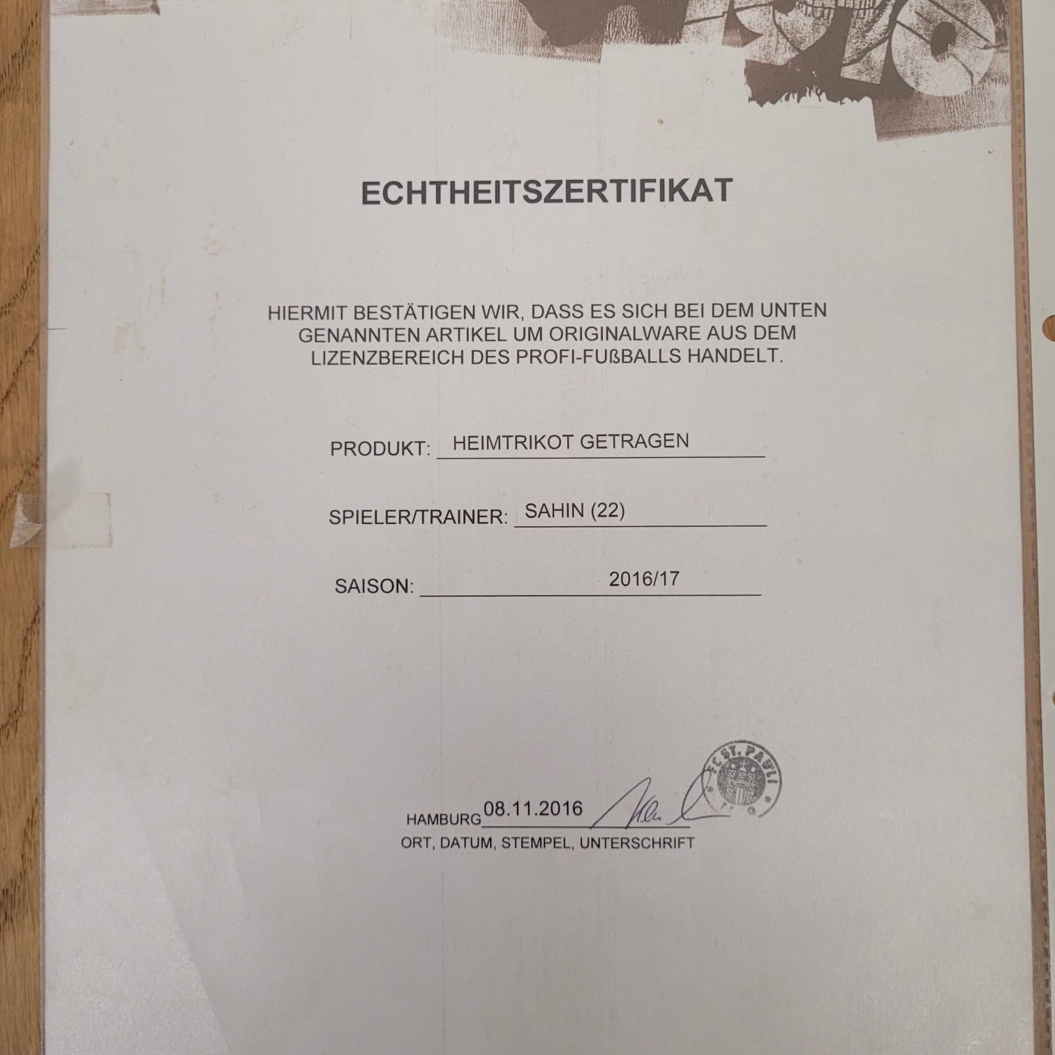 Trikot - FC St. Pauli - Cenk Şahin - 2016/2017 - M - matchworn mit Zertifikat - Heim